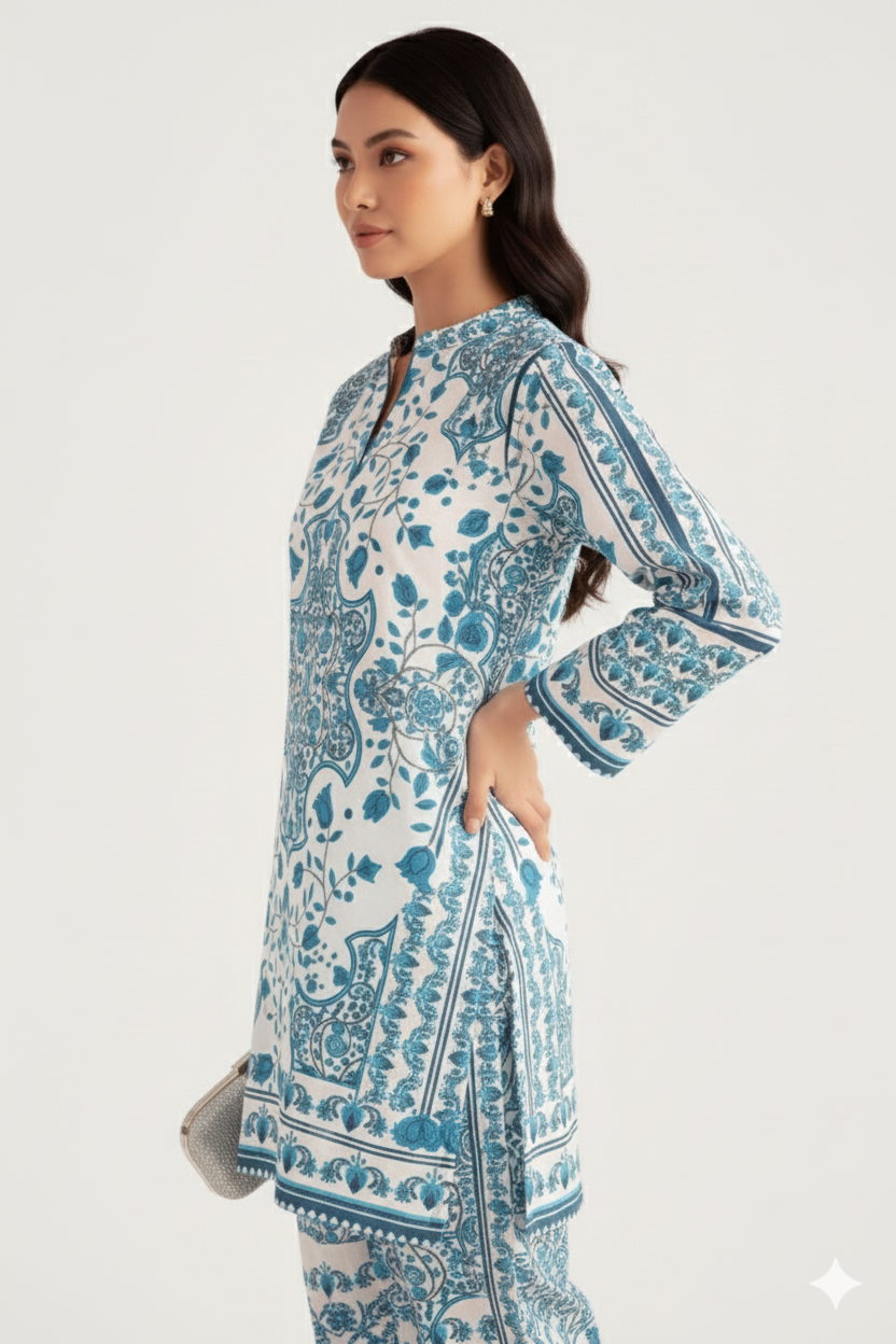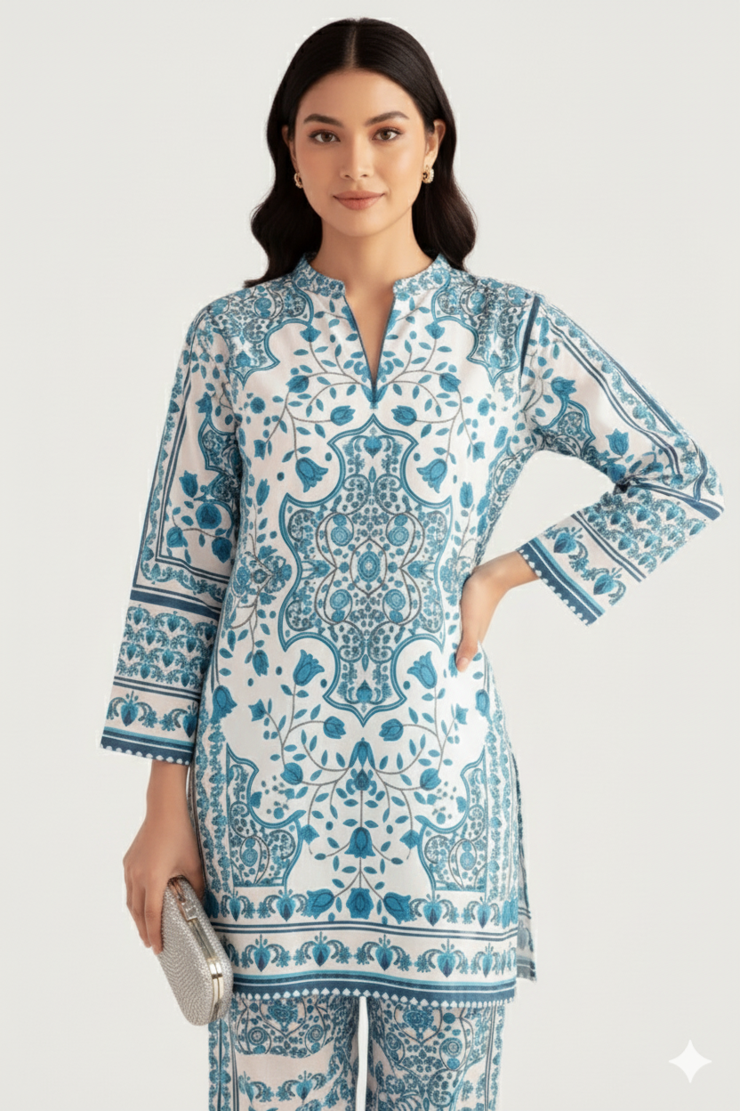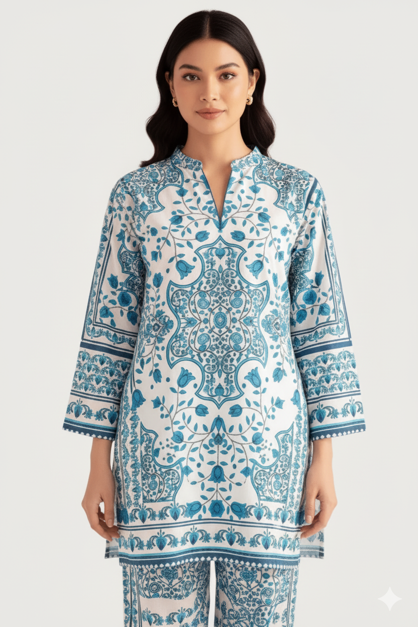 Fresh, chic, and effortlessly stylish – Pepper Mint is your go-to co-ord set that brings together comfort and elegance in one perfect outfit. Crafted from a soft cotton-silk blend, this blue and white printed kurta set is designed for women who love a mix of ethnic charm and modern flair.
